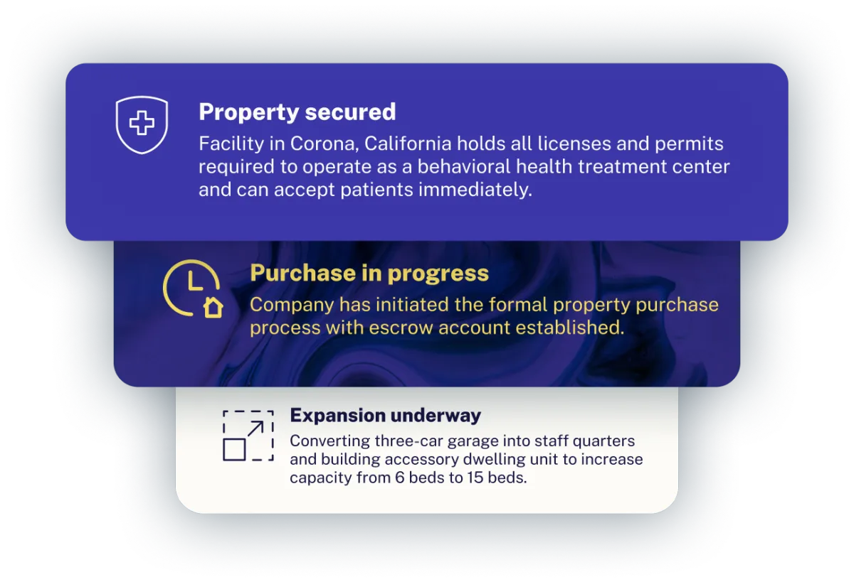 The company will use $1.9 million of the raise to purchase the California property outright. Investors own equity in tangible property, securing nearly half the capital raised.